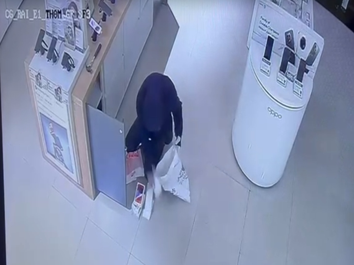 रायपुर में फिल्मी स्टाइल में चोरी: नकाबपोश ने रिलायंस डिजिटल स्टोर से उड़ाए 17 iPhone और Apple वॉच, CCTV में कैद हुई सनसनीखेज वारदात