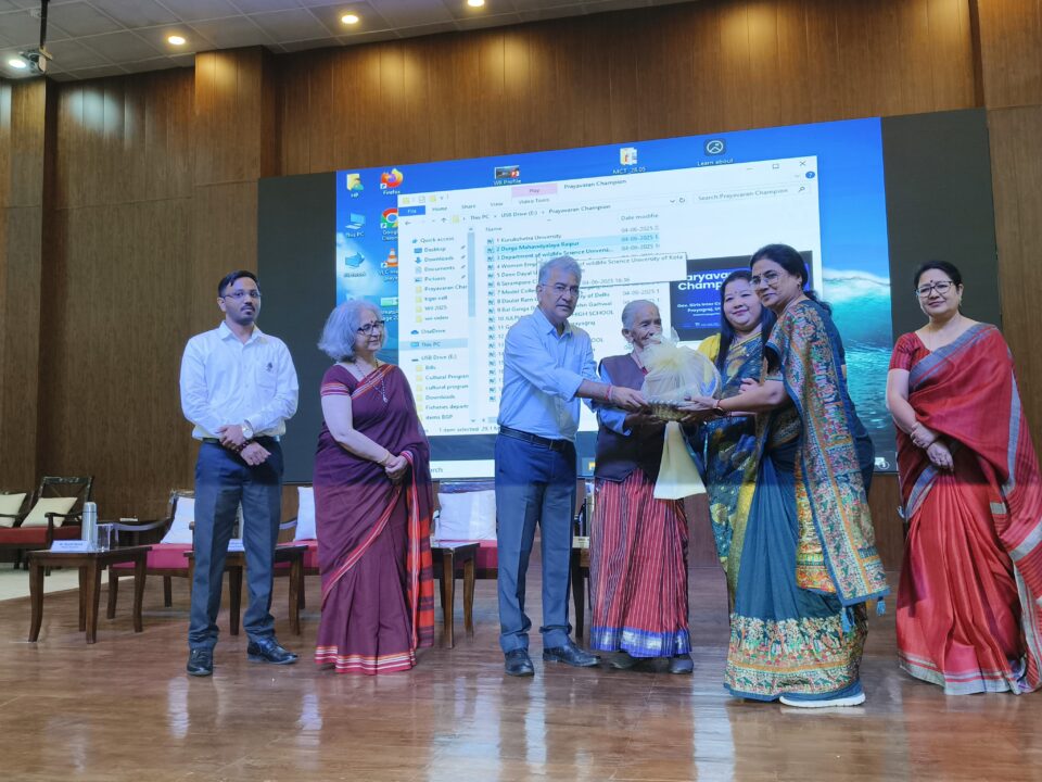 यह पुरस्कार पांच कैटेगरी में से चैंपियन इंस्टीट्यूशन फॉर नेचर समग्र उत्कृष्ट श्रेणी में प्रदान किया गया इस पुरस्कार के लिए महाविद्यालय श्रेणी में दुर्गा महाविद्यालय का चयन किया गया कार्यक्रम में मुख्य अतिथि श्री अनूप नौटियाल एवं विशिष्ट अतिथि चिपको आंदोलन की अंतिम जीवित कड़ी सुदेश देवी रही कार्यक्रम का शुभारंभ डॉ संगीता अंगों म वैज्ञानिक प्रशिक्षण एवं समन्वयक वन्य जीव संस्था एवं एनएमसीजी मैं अपने वक्तव्य में चैंपियंस अवार्ड की पूरी जानकारी दी एवं सभी अतिथियों का कार्यक्रम में आने के लिए आभार व्यक्त किया विशिष्ट अतिथि सुदेश देवी ने अपने संघर्ष शील जीवन को बड़े ही सरल तरीकों से रेखांकित किया उन्होंने बताया कि वह उसे जमाने की चौथी पास है जब लड़कियों को घर से नहीं निकलने दिया जाता था एवं शिक्षा से वंचित रखा जाता था आज के समय का जो सर्कुलर इकोनामी का मॉडल को उन्होंने बड़े सरल तरीके से समझाया उसे जमाने में यह प्रचलन में भी नहीं था उसे जमाने में पेड़ों को राखी बांधकर यह माना जाता था कि यह पेड़ ही हमारी रक्षा करेंगे जंगल से घास और घास से चार जानवरों के लिए वहीं से गोबर और फिर खेती खेती से अनाज हमारा भरण पोषण इसलिए पेड़ों को न काटने के लिए वह चिपको आंदोलन में अपनी महत्वपूर्ण भूमिका निभाई एवं इसके लिए उन्हें जेल भी जाना पड़ा पर जब जेल से आई तो उन्होंने यह बात बताई कि वहां पर हम लोग बड़े शांति से रहते थे वहां में कोई काम नहीं करना पड़ता था और बदले में हमें रोटी दाल सब्जी मिलती थी और हमें भजन सीखने को भी मिला पर जब हम जेल से बाहर आए तो हमें गांव वालों ने गांव से दूर रखा एवं समाज से हमें दूर रखा गया कि यह महिलाएं जेल में रहकर आई है इसलिए इनके साथ नहीं उठना बैठना सुदेश देवी आज भी लड़कियों की शिक्षा के लिए कार्य कर रही हैं मुख्य अतिथि के रूप में श्री अनूप नौटियाल ने कहा कि यह उत्तराखंड राज्य का गठन हुए भी 25 वर्ष पूरे हो रहे हैं इसलिए हमें इस राज्य के लिए विकास कैसे हो विकास के नीतियां क्या हो कैसे परिवर्तन हो विकास और पर्यावरण के बीच कैसे संतुलन बन क्योंकि पिछले 8 वर्षों में अगर पर्यावरण दिवस की थीम प्लास्टिक को लेकर रखी गई है इसका मतलब यह है की समस्या सिर्फ प्लास्टिक नहीं है समस्या सिंगल युस प्लास्टिक है क्योंकि वैश्विक स्तर पर अगर हम देखें तो 60 से 65 किलो प्रति व्यक्ति प्लास्टिक का उपयोग प्रतिवर्ष करता है कार्यक्रम में विभिन्न राज्यों से से 15 लोगों को सम्मानित किया गया आभार प्रदर्शन डॉक्टर सोफिल मलिक ने कियाकार्यक्रम में हेमलता मैडम जोशी मैडम डॉ सोफिल मलिक एवं वन्य जीव संस्थान की पूरी टीम वन्य जीव संस्थान नमामि गंगे राष्ट्रीय स्वच्छ गंगा मिशन के अधिकारी एवं सहयोगी एवं विद्यार्थी उपस्