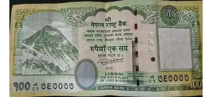 नेपाल के अनुसार विवादित नक्शा केवल ₹100 के नोट पर दर्शाया गया है।