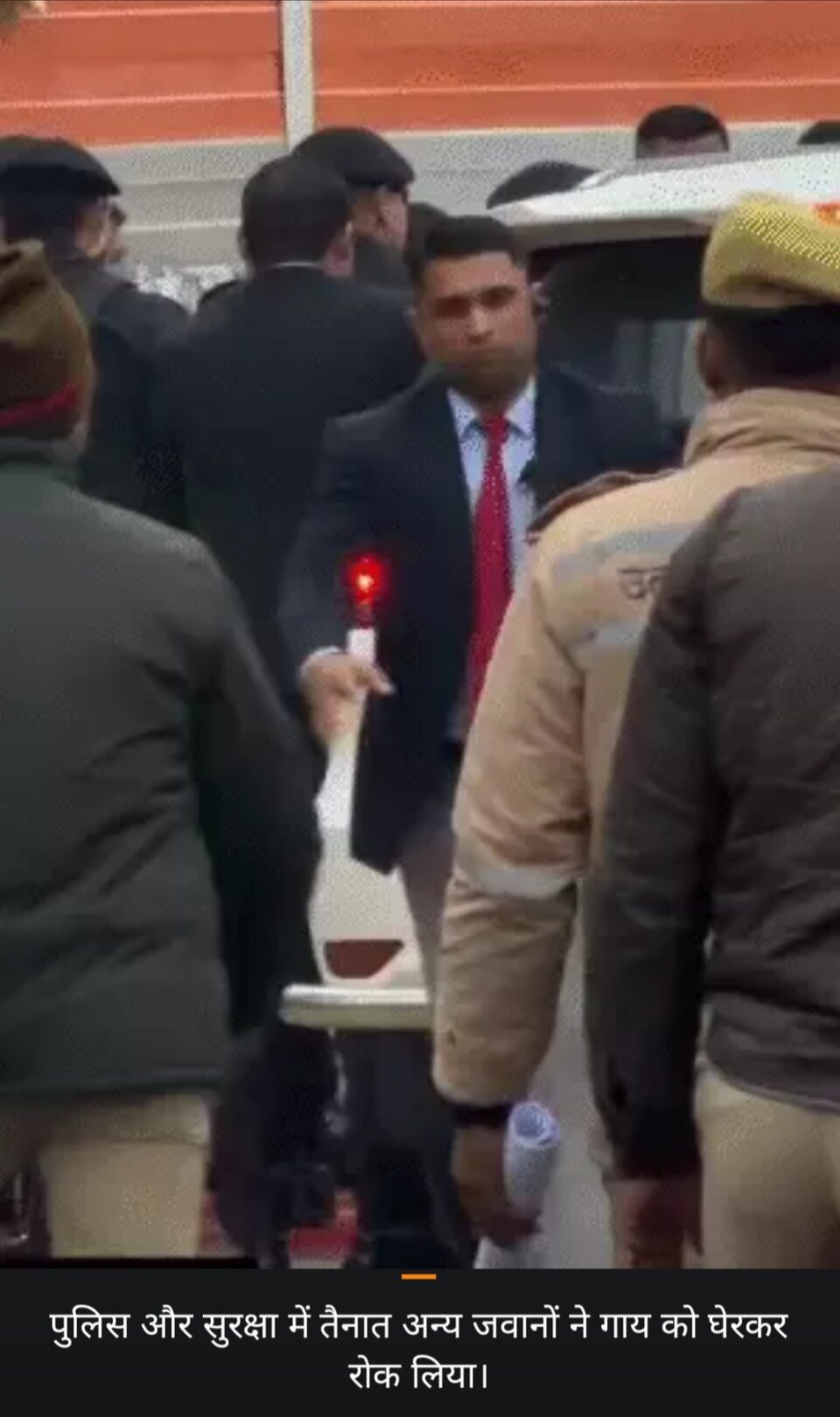 प्रत्यक्षदर्शियों और सामने आए वीडियो फुटेज के मुताबिक, पहले सांसद रवि किशन कार से उतरे, उसके कुछ ही क्षण बाद मुख्यमंत्री योगी आदित्यनाथ वाहन से बाहर आए। उनके उतरने के महज 4 सेकेंड बाद ही गाय सुरक्षा घेरे के करीब पहुंच गई। हालांकि, मौके पर तैनात करीब 15 सुरक्षाकर्मी तुरंत सतर्क हुए और गाय को घेरकर दूसरी दिशा में भगा दिया, जिससे किसी भी तरह की अनहोनी टल गई।