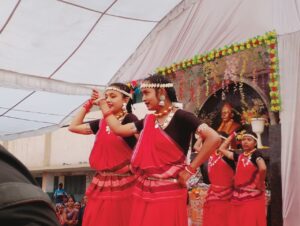 कार्यक्रम का शुभारंभ मिडिल क्लास (कक्षा 6 से 8) के विद्यार्थियों द्वारा प्रस्तुत स्वागत गीत एवं सांस्कृतिक प्रस्तुति से हुआ, जिसने पूरे वातावरण को उल्लासपूर्ण बना दिया। इसके पश्चात प्राथमिक कक्षाओं (कक्षा 1 से 5) के विद्यार्थियों ने पारंपरिक एवं समूह नृत्य प्रस्तुत कर भारतीय संस्कृति की सुंदर झलक दिखाई।