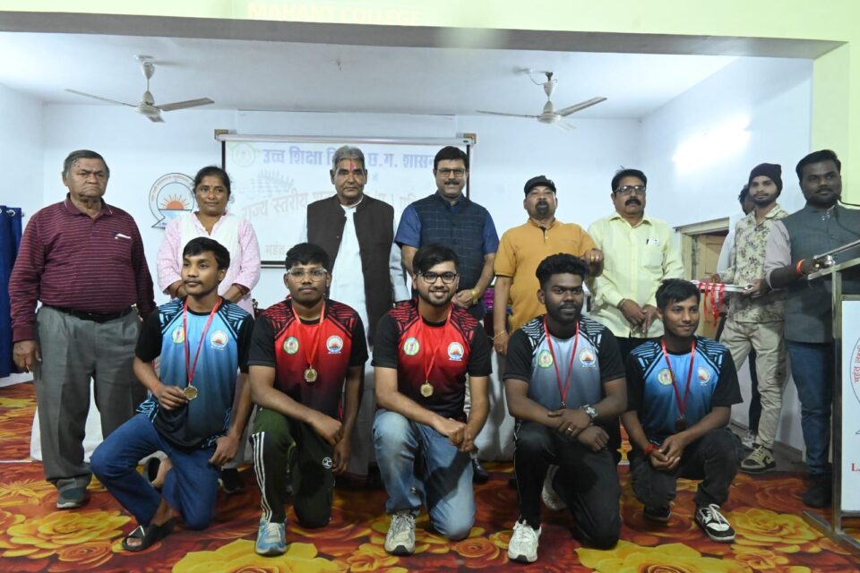 गांधी चौक स्थित महंत लक्ष्मी नारायण दास महाविद्यालय गांधी में आज राज्य स्तरीय शतरंज प्रतियोगिता का समापन हुआ जिसमें विजेता पुरुष वर्ग से रायपुर सेक्टर के उपविजेता दुर्ग सेक्टर के एवं महिला वर्ग से विजेता रायपुर सेक्टर व उपविजेता दुर्ग सेक्टर से रही ज्ञात हो कि इस दो दिवसीय राज्य स्तर प्रतियोगिता में संपूर्ण छत्तीसगढ़ के 11 सेक्टर से 132 से अधिक छात्र-छात्राएं प्रतियोगिता में हिस्सा लिए कार्यक्रम के समापन में मुख्य अतिथि श्री अजय तिवारी , अध्यक्ष शासी निकाय एवं कार्यक्रम की अध्यक्षता डॉ देवाशीष मुखर्जी प्राचार्य महंत लक्ष्मी नारायण दास ने किया साथ ही विशेष रूप से सेवा निवृत श्री पी के हरि सर, रामानंद यदु व विभिन्न महाविद्यालय के कीड़ा अधिकारी मौजूद रहे इस अवसर पर मुख्य अतिथि ने कहा कि यह जीत आपके लिए जीवन में एक नया उमंग भरेगा साथ ही हरने वाले खिलाड़ी एक नई सबक के साथ अपने जीवन में उन्नति के नए नियोजन करेंगे कार्यक्रम की अध्यक्षता कर रहे डॉ देवाशीष मुखर्जी ने कहा कि सातवीं शताब्दी से भारत देश ने ही संपूर्ण विश्व को शतरंज का खेल प्रदान किया यह भारत देश से प्रारंभ होकर अरब देश होकर यूरोप से शतरंज के रूप में प्रसिद्ध हुई निर्णायकगण में मुख्य रूप से रोहित यादव ने अपनी भूमिका निभाई कार्यक्रम का संचालन मनोज प्रधान सर ने की एवं कार्यक्रम में विशेष रूप से प्यारेलाल साहू, डॉ रिंकू तिवारी, तुलाराम एवं अन्य कीड़ा अधिकारी उपस्थित हुए